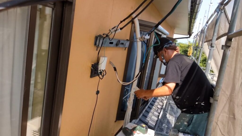 2階の外壁まで塗装をするためにまずは足場を組んでいきます。現場というものは常に「何か」が発生するもので、この日も予想だにしないことが発生しました。